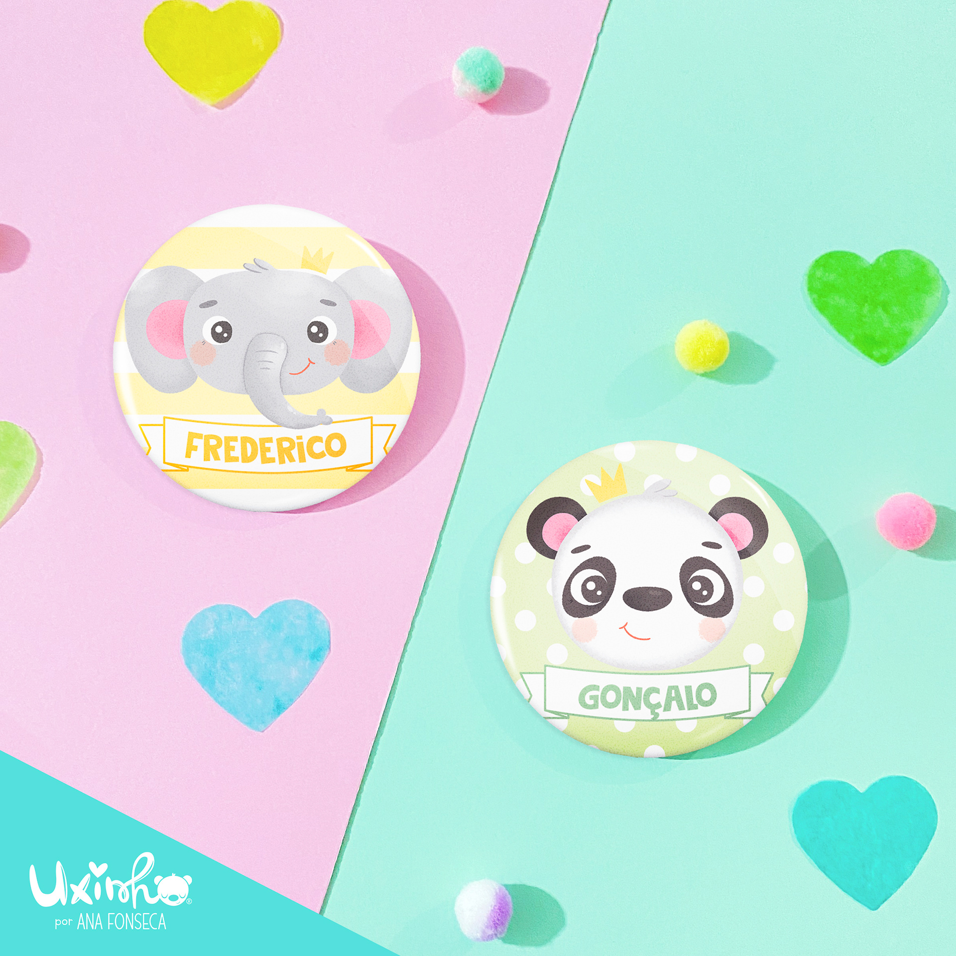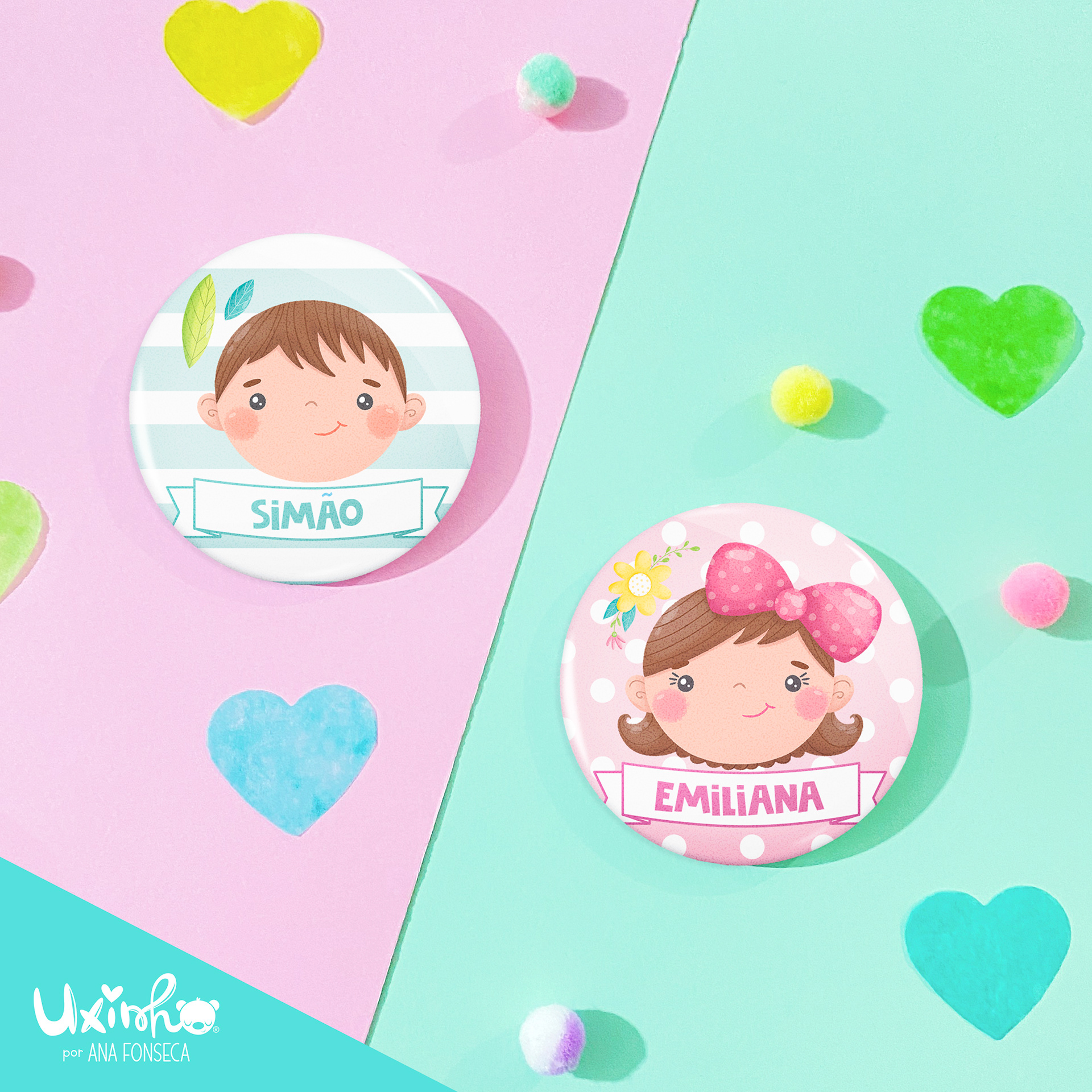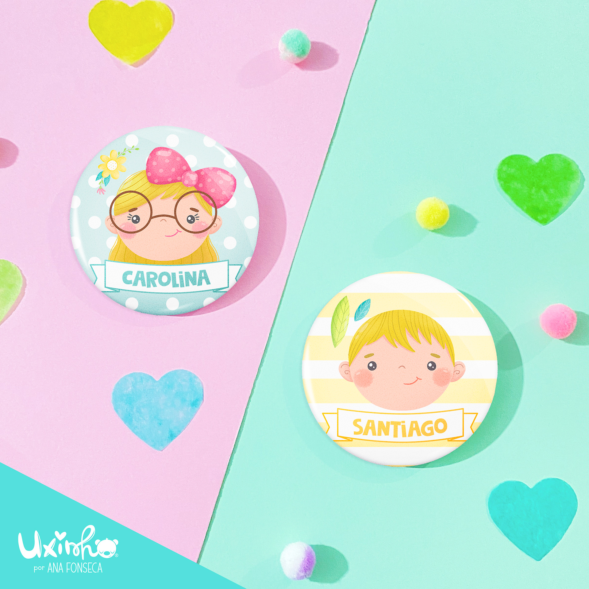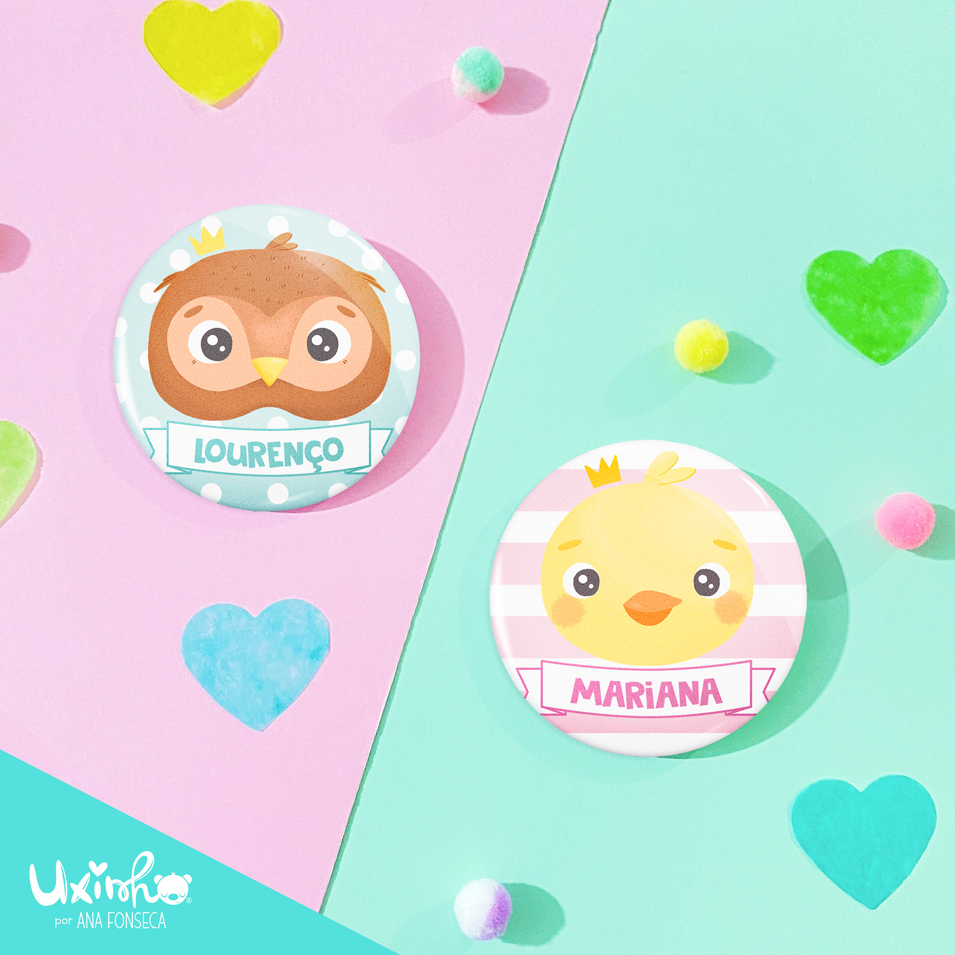(cada crachá de 58mm inclui um saco individual de organza)