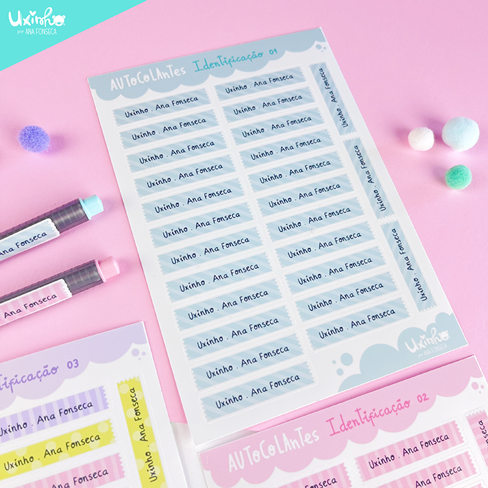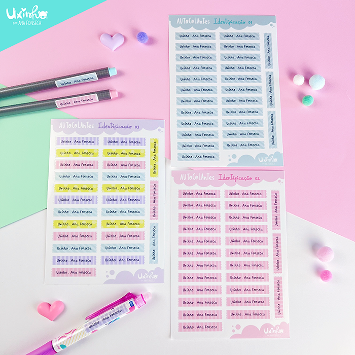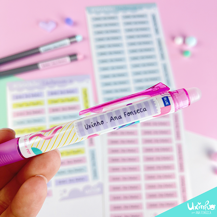 AUTOCOLANTES/ etiquetas com nome, para lápis/canetas e outro material: